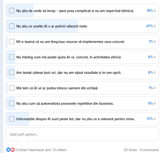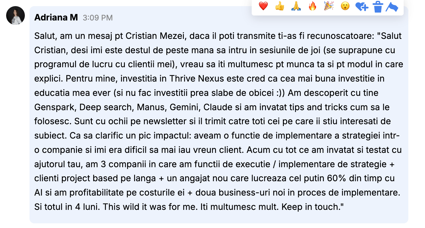 Asta e exact ce ne luptăm să rezolvăm de mai bine de trei ani în piața românească... prin tot ce facem, ajutăm fondatorii și specialiștii să folosească AI ca pe un partener de încredere (în loc de partener de joacă sau ceartă).